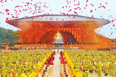 大典分为盛世礼炮、敬献花篮、净手上香、行施拜礼、恭读拜文、高唱颂歌、乐舞敬拜、祈福中华、天地人和等9项仪程。