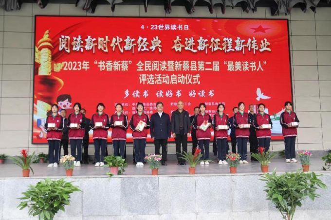 启动仪式上,市民代表宣读《4.23世界读书日倡议书》,新蔡县政府党组成员、县职业技术学院院长吴华,新蔡县人大常委会党组副书记、县总工会主席翁建春为学生代表赠书并发放绿书签。随后,吴华院长宣布2023年“书香新蔡”全民阅读暨新蔡县第二届“最美读书人”评选活动正式启动。