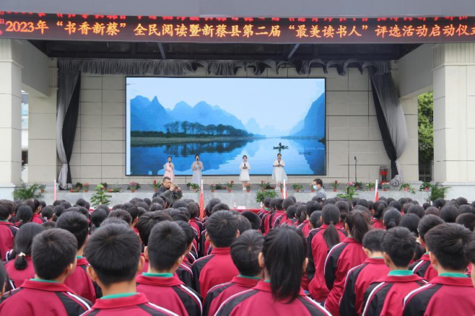 漫卷诗书生雅趣,细品不觉已春深。在第28个“世界读书日”即将来临之际,4月21日,由新蔡县委宣传部、县总工会、县教育局和县文广旅局共同举办的2023年“书香新蔡”全民阅读暨新蔡县第二届“最美读书人”评选活动启动仪式在新蔡县实验中学举行,新蔡县政府党组成员、县职业技术学院院长吴华,新蔡县人大常委会党组副书记、县总工会主席翁建春,新蔡县教育局副局长李景波等出席仪式。