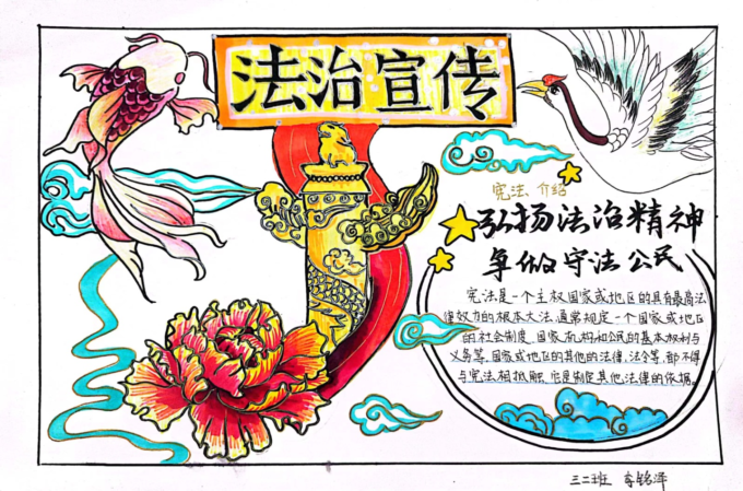 会后,各班以“法治教育”为主题制作了手抄报。学生通过自己的视角与想法,尽情展示绘画巧思,绘制出一幅幅内容丰富、图文并茂的手抄报!