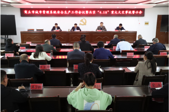 4月27日下午,商丘市城管系统召开安全生产工作会议,深入学习贯彻习近平总书记关于安全生产的重要指示精神,深刻汲取北京“4•18”重大火灾事故教训,安排部署城管系统安全生产工作。党组副书记、副局长聂慧民,二级调研员闫东坡,党组成员、纪检组长张旭,副局长张军出席会议。