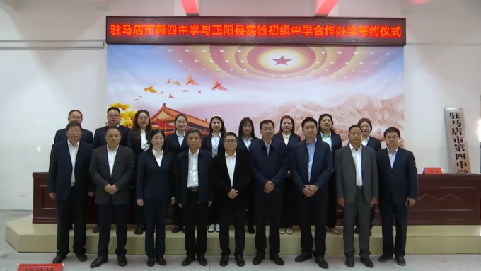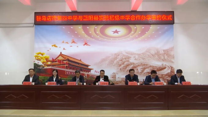 仪式上,正阳县实验初级中学与驻马店市第四中学现场签署了合作办学协议并进行揭牌。