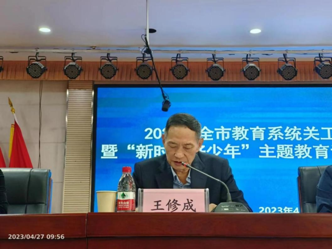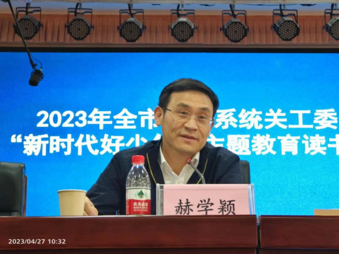 为深入学习贯彻党的二十大精神,全面落实中共中央办公厅 国务院办公厅《关于加强新时代关心下一代工作委员会工作的意见》及省委办公厅 省人民政府办公厅《关于进一步加强新时代关心下一代工作委员会工作的实施意见》精神,贯彻落实全省教育系统关心下一代工作会议精神,进一步加强新时代关工委组织建设,创新工作机制,紧紧围绕立德树人根本任务,营造新时代关心下一代的社会氛围。2023年4月27日上午,驻马店市教育局在驻马店实验小学北校区举行了2023年全市教育系统关工委工作会议暨“新时代好少年”主题教育读书活动启动仪式。省教育厅关工委副主任赵国河,市教育局党组成员、副局长刘世杰,市教育局一级调研员鄢忠伟,市教育局关工委主任王修成,《课堂内外》杂志社副总编辑赫学颖,驻马店市新华书店党委书记、总经理张莉,市教育局四级调研员、关工委副主任李蔚巍出席会议。各县区教育局局长或分管领导、关工委主任、关工委秘书长,局直各学校主要领导、关工委秘书长、各县区新华书店负责同志等参加了会议。会议由市教育局一级调研员鄢忠伟主持。