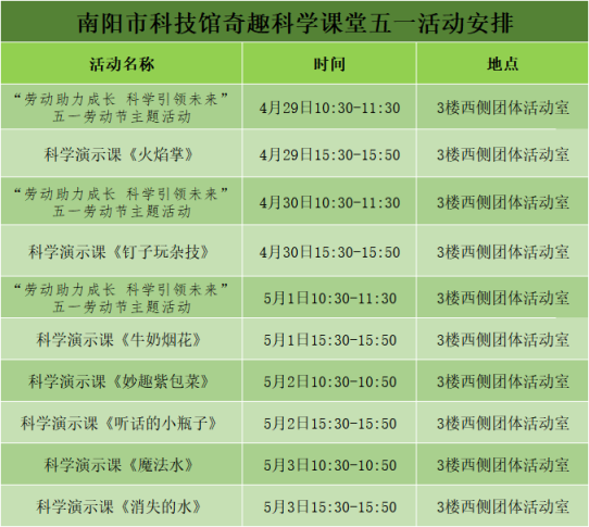 南阳市科技馆奇趣科学课堂将举办“劳动助力成长,科学引领未来”主题活动。