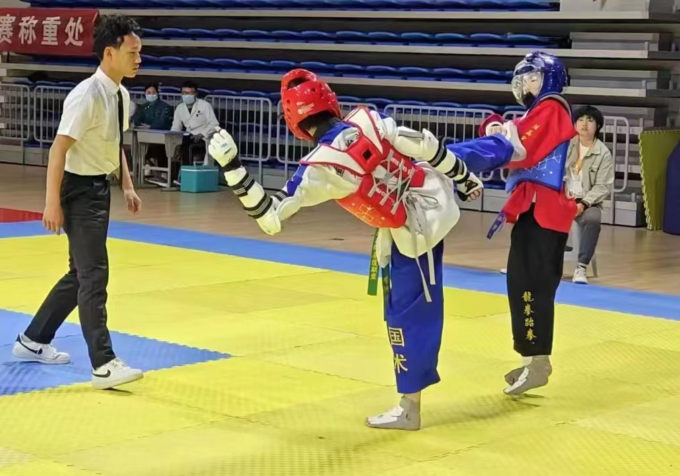 为期两天的比赛,赛场内火热朝天,面对强劲的对手,参赛选手们顽强拼搏、勇于争先。下劈精准凶狠,侧踢力道十足,竞赛对战激烈,场面扣人心弦,一场场的实战对决展现了跆拳道独特魅力,诠释了百折不屈、奋战到底的跆拳道精神,博得了观众的阵阵喝彩。