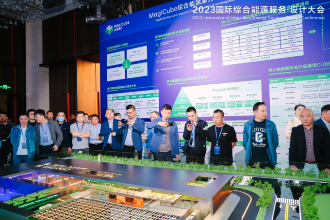 (与会嘉宾在正星综合能源服务站模型前听取服务设计理念)
