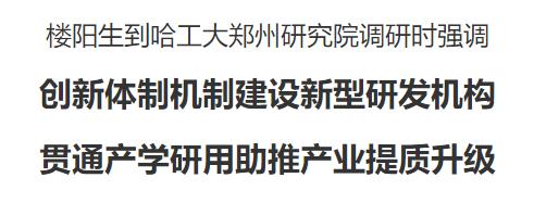 5月5日,省委书记楼阳生到哈工大郑州研究院调研,并主持召开座谈会,研究推进一流大学(科研机构)郑州研究院建设。