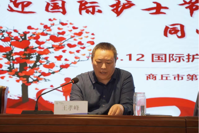 王孝峰院长代表院领导班子向全院护士致以节日的问候和崇高的敬意,对受表彰的同志们表示热烈的祝贺。对三院医疗集团护理团队在过去的工作中付出的努力和取得的成绩表示了充分肯定;同时,希望全院的护理工作者继续发扬南丁格尔精神,恪尽职守、乐于奉献、勇于探索、敢于实践,努力开创护理工作新局面。
