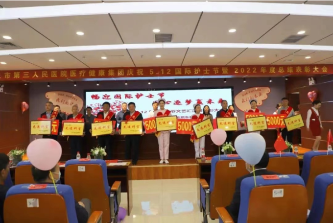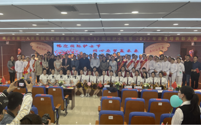 为纪念第112个国际护士节,弘扬无私奉献的南丁格尔精神,表彰先进、树立榜样,活跃医院文化,5月8日下午,商丘市三院医疗集团在门诊五楼学术报告厅隆重举行纪念“5.12”国际护士节文艺汇演暨2022年度表彰大会。梁园区政协党组成员、梁园区卫健委党组书记、主任、市三院党委书记赵修玉,党委副书记、院长王孝峰,纪检书记黄宇静,副院长刘勇、程金玉、郜彩霞,党委委员赵颖出席大会。行政职能部门主任、临床科主任、护士长、受表彰人员及全院护士代表200余人欢聚一堂,共同观看了以“畅迎国际护士节,同心逐梦赢未来”为主题的文艺汇演。