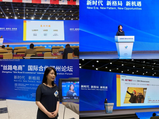 敦煌网招商及品类运营副总裁沈晓燕代表集团参与同期举办的2023“丝路电商”国际合作郑州论坛,以“让网红成为中国供应链出海全球合伙人”为议题,在在本次论坛中发表了主题演讲,向与会的政府领导、丝路电商伙伴国政府代表、智库专家学者、其他行业跨境电商及供应链服务企业代表等,分享了敦煌网集团针对当前社交电商、红人经济带来全新流量红利的趋势观察,以及敦煌网集团如何“打赢本土战役,拉动供给升级,领跑红人经济”的跨境电商实战经验。