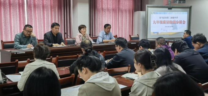 为全面了解九年级教育教学现状,进一步提高教育教学质量,驻马店市第二初级中学于 5 月 5 日下午在南北校区同时召开九年级调研质量分析会。会议分别由副校长许可、肖依主持,校长梁宗京到会,副校长张煜、何中永及九年级全体教师参加。