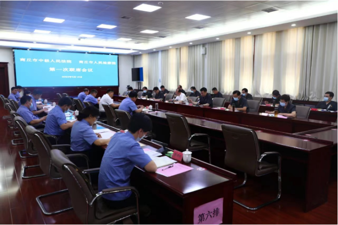 为进一步加强法检常态化沟通交流,促进法检两院工作良性互动,凝聚法检合力,5月16日上午,商丘市中级人民法院、商丘市人民检察院召开第一次联席会议。商丘中院党组书记、院长杨飞,商丘市检察院党组书记、检察长王建波出席会议并讲话。两院领导班子成员及相关部门负责人参加会议。会议由商丘中院党组副书记、副院长史昶伟主持。
