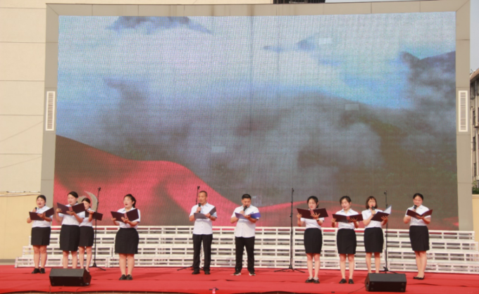 老师们以端庄的仪态、标准的语音、丰富的情感表达了对祖国赤诚的情怀,慷慨激昂的朗诵赢得了现场阵阵喝彩。