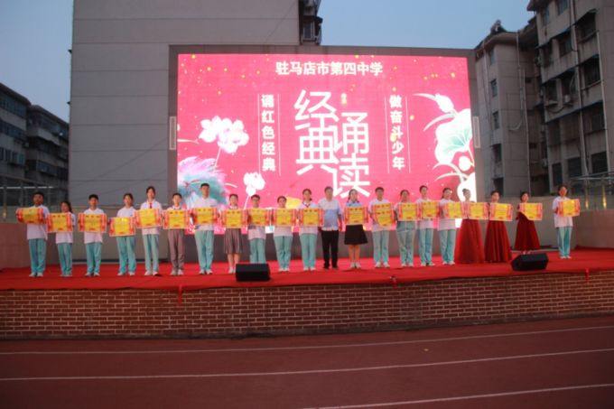 为传承红色经典文化,引领学生感受祖国传统文化的博大精深,营造浓郁的书香校园氛围,5月19日,驻马店市第四中学分别在南北两区同时举办了“诵红色经典 做奋斗少年”——童心向党经典诵读比赛。