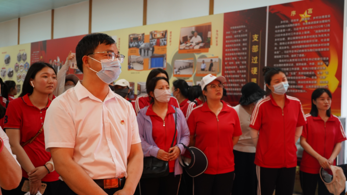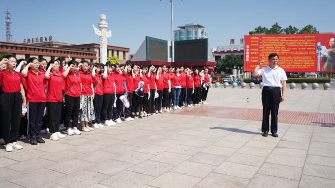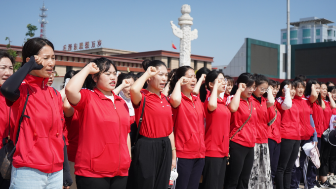 上午9时许,参加活动的全体人员缓步迈入南街村红色革命教育区红色广场中央毛主席塑像前,深切缅怀伟人的丰功伟绩,表达对毛主席的崇高敬意和无限追思。全体党员紧握右拳,面向党旗,集体重温入党誓词。
