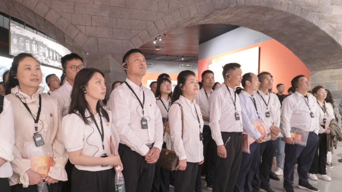 一渠绕群山,精神动天下。看着一幅幅栩栩如生的雕像和一段段凝练历史的珍贵影像,党员们静心聆听讲解,追忆峥嵘岁月,重温红色历史,汲取奋进力量。在狭窄悠长的石道上,大家亲身感受红旗渠的历史风貌,体验当年修渠人在粮食物资短缺、技术设备落后等极端艰苦情况下付出的艰辛,在实情实景中感悟红旗渠精神。