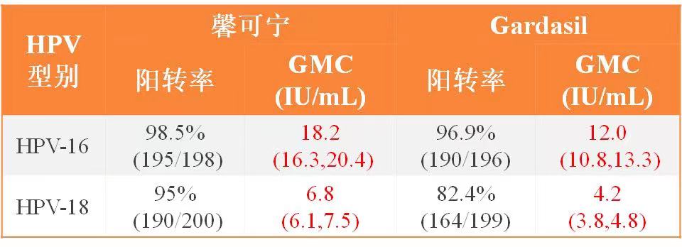 吴婷教授表示,IPVC大会上还同期公布了九价HPV疫苗(馨可宁9)和进口九价HPV疫苗在18-26岁女性中的头对头免疫原性比较结果。
