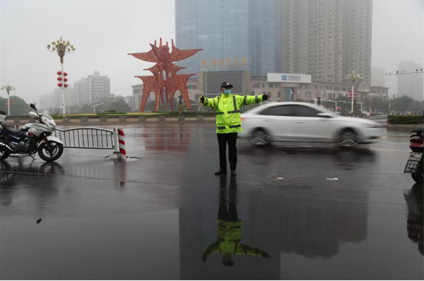 连日来,商丘市出现持续降雨,视线受阻,造成道路湿滑,部分低洼路面出现不同程度积水,给过往车辆和行人带来极大的交通安全隐患。商丘交警闻“汛”而动,立即启动恶劣天气应急预案,不惧风雨,全员上路,在雨中全力疏导指挥交通,雨中撑起“安全伞”,以实际行动护航路面安全畅通。