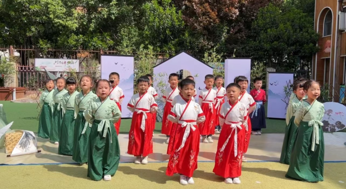 童趣诵读,纵享六一。为让幼儿在经典诗文熏陶中感悟中华文化的博大精深,传承经典,怡养美德,以年龄段为单位开展了形式多样的经典诵读活动。伴着铿锵有力的诵读声,表达了孩子们对传统文化的热爱和传承。