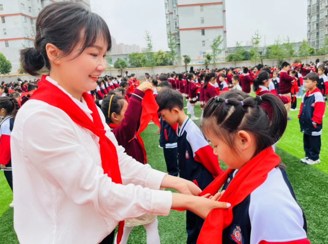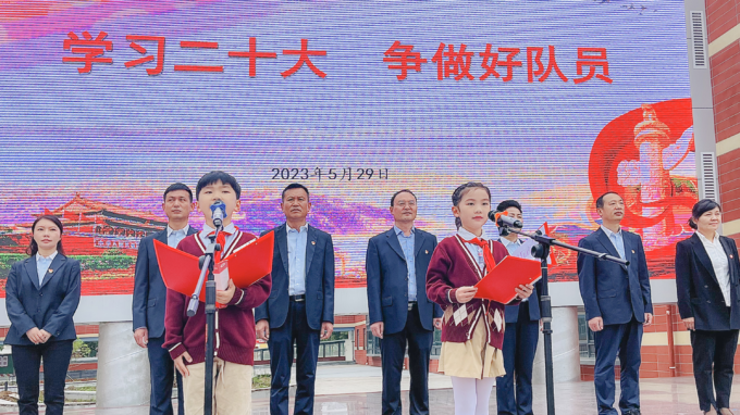5月29日,在“六一”儿童节来临之际,驻马店实验小学四个校区依次举行了“学习二十大 争做好队员”新队员入队仪式,734名新队员戴上红领巾,光荣加入中国少年先锋队。