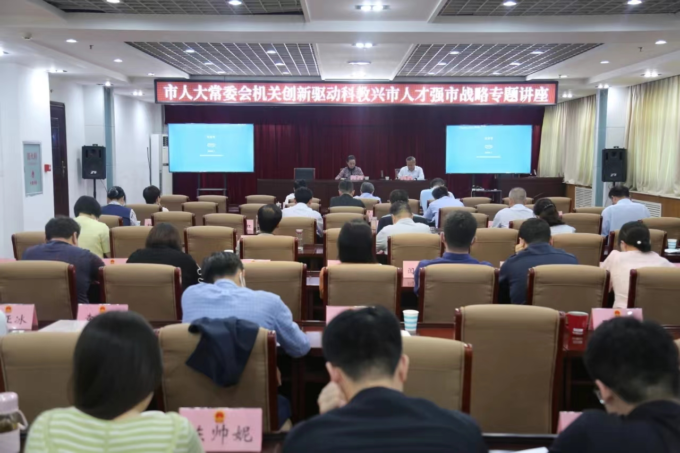 5月26日上午,漯河市人大常委会机关举行“十大战略”之“创新驱动、科教兴市、人才强市战略”专题学习讲座。漯河市人大常委会党组成员、秘书长、机关党组书记张静毅参加。市人大常委会教科文卫工委主任刘爱民主持。