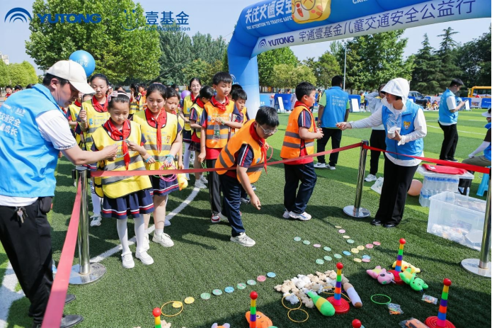 据悉,宇通壹基金“儿童安全公益行”的课程由宇通客车联合壹基金、中国教育发展战略学会共同开发设计,通过交通安全训练营、动画视频、交通安全绘本、交通安全操等,以“看、听、读、写、体验”的全方位形式,帮助更多孩子提升安全意识,使他们掌握应对避险技能。其中共有“认识大货车内轮差”“认识车辆盲区”“安全头盔接力赛”“交通安全出行棋”“探索神奇的盒子”“校车安全乘车体验”“安全带的使用方法”等7项游戏体验项目。