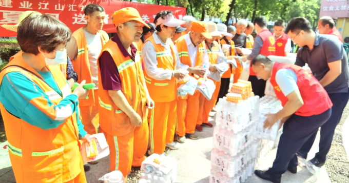 “收到志愿者们为我们送来的物资,我们都很感动,让我们在高温天气下能够感受到清凉,我们将继续做好辖区环境卫生工作,让城市环境因我们更美丽。”现场一名环卫工人激动地表示。