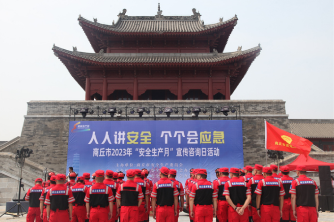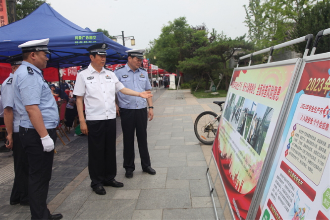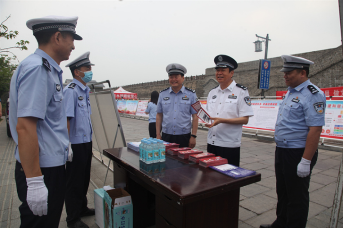 6月16日,商丘市“安全生产月”主题宣传活动在商丘古城东大街隆重举行,为进一步提升广大交通参与者对相关法律法规知识的知晓率,强化道路交通安全意识、法律法规意识、文明出行意识,扎实推进道路交通管理工作,商丘市公安局交警支队围绕“人人讲安全、个个会应急”宣传活动主题,积极参加了“安全生产月”主题宣传活动。市局、支队有关领导和相关直属大队民辅警代表参加了活动。