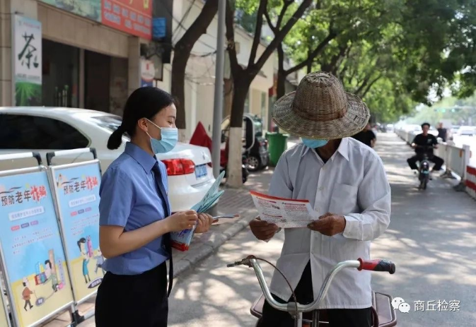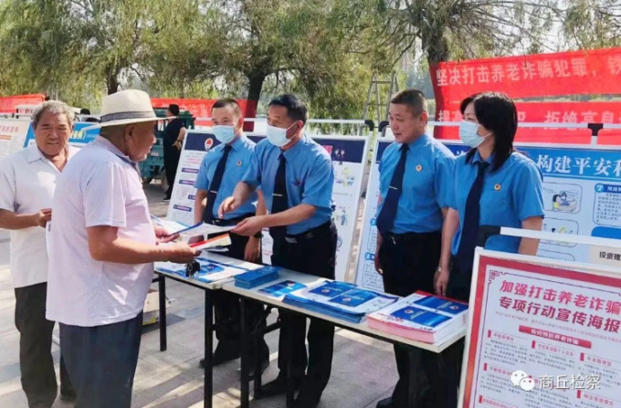 民权县检察院干警在街头向群众普及防范非法集资相关知识。