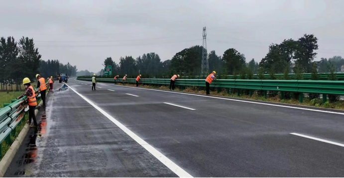 随着夏季的到来,雨水逐渐增多。6月19日,笔者走进施工现场,看到多名工人冒着小雨在安装波形护栏,项目有条不紊推进。