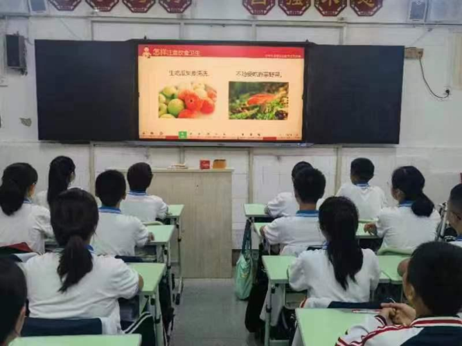 2023 年 6 月 12 日,学校后勤处和政教处结合,组织全校七、八年级 24 个班召开了食品安全主题班会。班主任从食品卫生安全、健康生活方式、文明就餐礼仪、进餐卫生要求等方面进行教育,帮助学生养成良好的饮食卫生习惯。