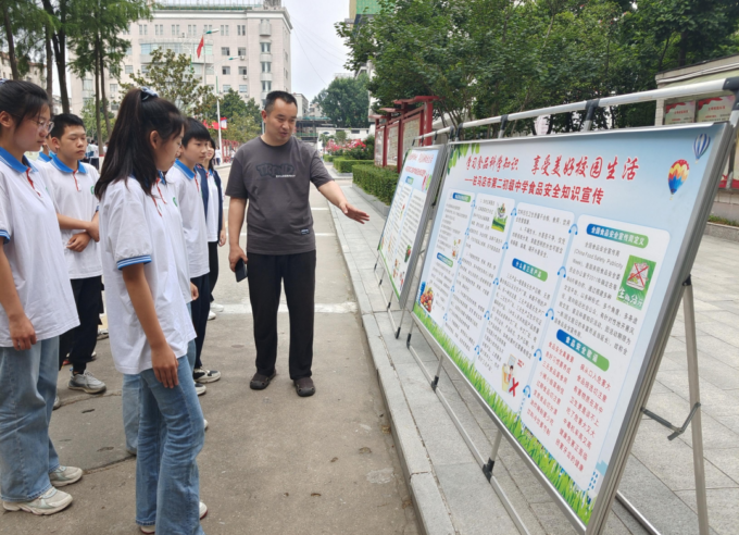 学校制作关于食品安全的宣传版面,摆放在校园显著位置,引导学生了解食品安全常识,丰富学生校园生活内容。