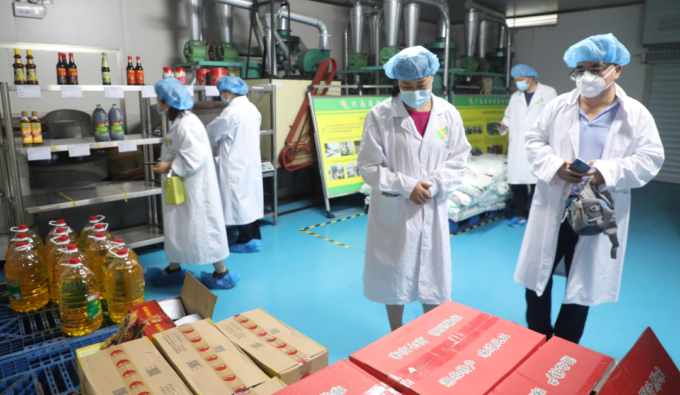 6 月 14 日上午,副校长胡向红带领八年级家长代表到餐饮公司观看了午餐的食材分拣、清洗、切割、烹饪、分装、入盒全过程,查看了原料仓库、烹饪车间、食品留样检测室等地方,家长代表一致表示对配餐公司和学校监管很满意。
