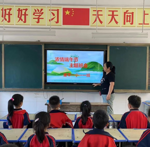 19日下午,学校组织各班开展了以“浓情端午”为主题的班会活动。班会上,各班班主任首先让学生们讲述了“端午节”的由来,接着利用多媒体课件让他们了解了我国各地不同的过节习俗,如挂艾叶、菖蒲、赛龙舟、吃粽子、饮雄黄酒、小孩子佩香包等。以及爱国诗人屈原的故事,让“端午”文化走进校园。学校还倡导学生向长辈学习粽子的各种制法,自己动手制作 “粽子”,感受民俗文化。