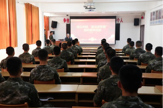 在八一建军节即将到来之际,栾立学代表中院党组向武警官兵致以节日的问候,并对他们忠诚履职、维护社会和谐稳定表示崇高的敬意,向武警官兵介绍了商丘中院涉军维权工作开展情况和具体成效,就如何审理好涉军维权案件与武警官兵进行了深入交流。随后,民一庭副庭长王锋向大家宣讲了婚约财产、民间借贷等法律知识,并结合具体案例,深入浅出地解答了武警官兵提出的法律问题,受到了大家的一致好评。