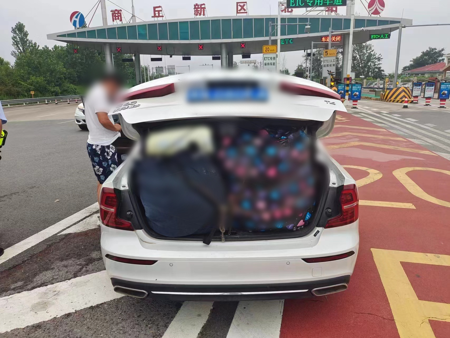 7月17日18时30分许,九中队中队长邵辉带领中队人员在德上高速永城收费站,检查一辆车牌号为豫NB2***小轿车时,发现驾驶员神色紧张,打开车门发现核载5人的轿车坐了6个人,驾驶员高某表示带着家人去芒砀山游玩,想着车里多一个也没事,就挤一挤上了路,没想到被查个正着。
