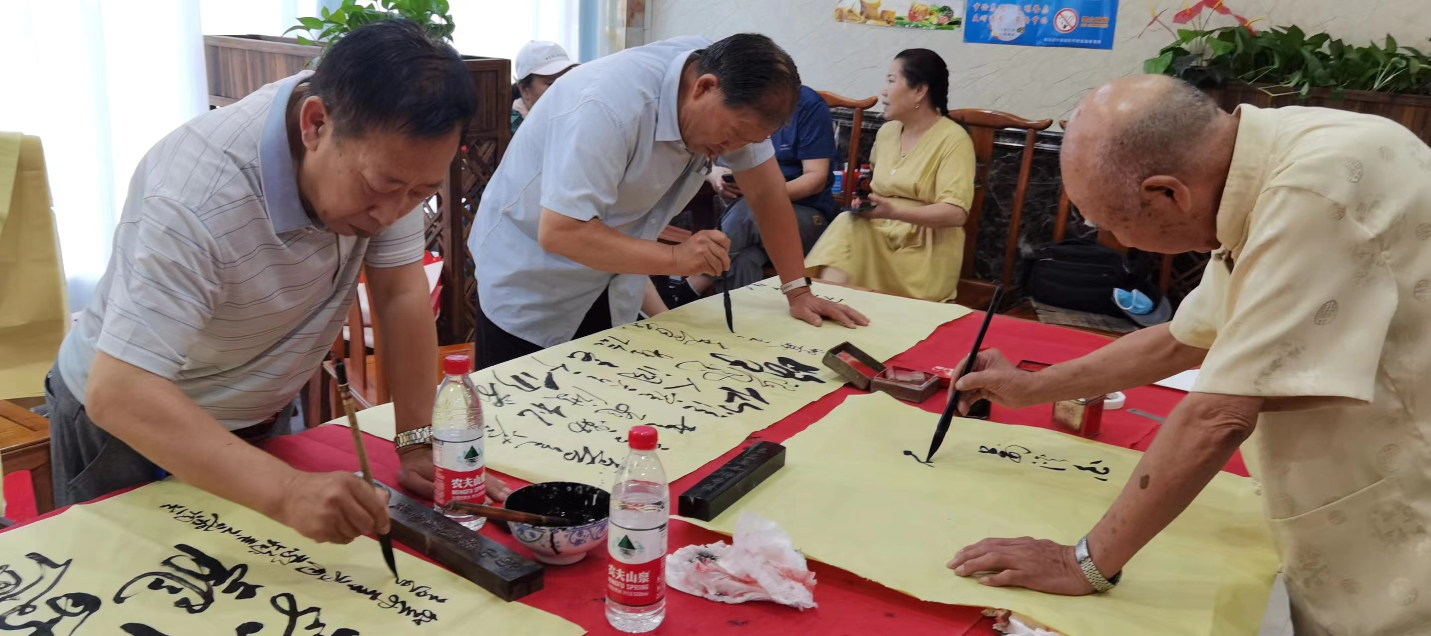 在八一建军节来临之际,为弘扬拥军优属、拥政爱民光荣传统,增进军民鱼水友谊,7月23日,驻马店市毛泽东书法艺术研究会“挥毫抒壮志 泼墨扬军威”书画笔会活动在德福楼饭店举行。大家共叙军民鱼水深情,用翰墨丹青为新时代最可爱的人送上节日的祝福。
