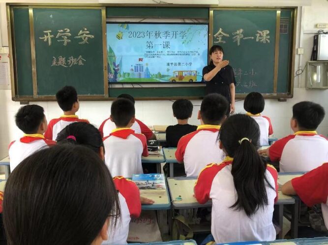 新学年伊始,为了加强对学生的养成教育、培养学生安全意识、引导学生及早进入学习状态。2023年9月3日上午,遂平县第二小学在政教处的组织下,以班为单位,开展了“开学安全第一课”主题教育活动。