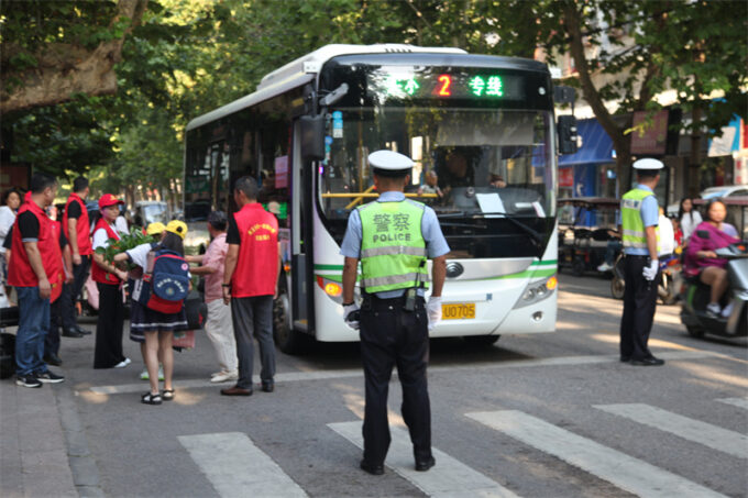 9月1日,开学第一天,为确保广大师生安全返校,商丘市公安局交警支队积极协调有关部门,精心组织、周密部署,维护校园门口及周边道路良好交通秩序,加强校车和接送学生车辆交通安全管理,防范涉及学生的交通事故发生,守护学生上下学出行安全,为学生保驾护航。