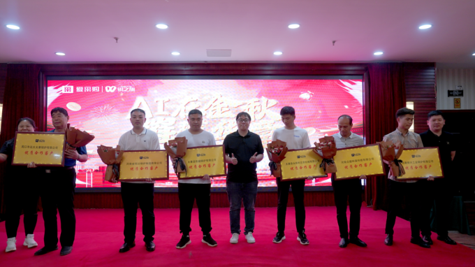 在热烈的讨论之后,进入到了激动人心的优秀企业颁奖环节。周口锐之旗网络科技有限公司总经理王保光、河南锐之旗高级客服经理王伟丽、爱采购金牌讲师梁淘淘共同上台为获奖企业代表送上奖牌,感谢他们在市场数字转型期的活跃表现。这些优秀企业在面对日新月异的时代洪流时,敢于拥抱挑战,他们的勇气和智慧无疑为其他企业提供了宝贵的借鉴。