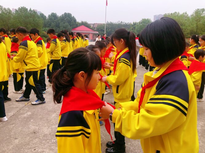 本次入队仪式,严格遵照规范的小学入队仪式流程展开,通过出队旗,唱队歌,老队员为新队员授红领巾,宣誓,呼号等环节,让初入少先队的队员们深刻感悟红领巾的意义并明晓自身的责任和使命。