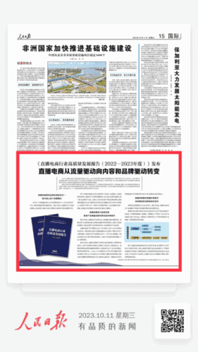 10月11日,人民日报刊发《直播电商从流量驱动向内容和品牌驱动转变》一文,报道了《直播电商行业高质量发展报告(2022–2023年度)》(简称“蓝皮书”)的正式发布,蓝皮书由中国计量科学研究院主编,中国质量认证中心、中国海关科学技术研究中心等参编,美腕(上海)网络科技有限公司(简称“美腕”)等企业提供重要研究样本支持。这是中国计量科学研究院第二次发布直播电商质量蓝皮书,也是直播电商机构美腕第二次深度参与,以李佳琦直播间等旗下直播间的一线直播实践经验提供研究样本与支持。