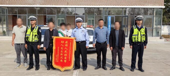 10月24日上午,老人家属专门制作一面写有“感谢人民好交警,助人为乐新风尚”的锦旗,来到中队驻地当面致谢。