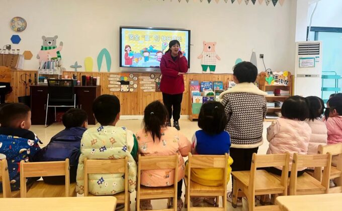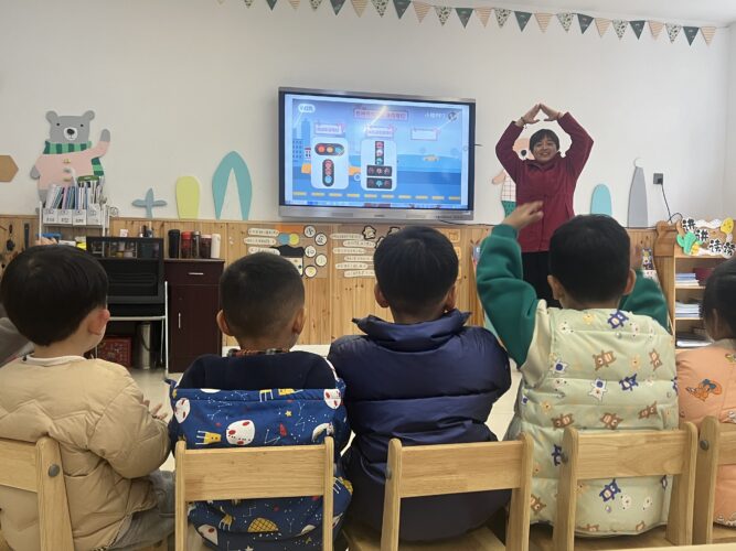 活动中,班主任老师根据幼儿园小朋友们年龄小、接受能力较弱的情况,通过卡通动画PPT和交通安全卡通宣传图册,帮助小朋友们识别交通信号灯、了解交通安全标志、车辆盲区的危险性等知识。教育小朋友们过马路时要“一停、二看、三通过”,做到“红灯停、绿灯行”,不在马路上嬉戏打闹。并将安全教育融入到幼儿的一日生活和游戏教学中。通过学唱安全儿歌、识别安全标识、小交警游戏、小司机游戏等丰富有趣的教育形式,教给幼儿必要的交通安全常识,做一个遵守交通规则的好孩子。