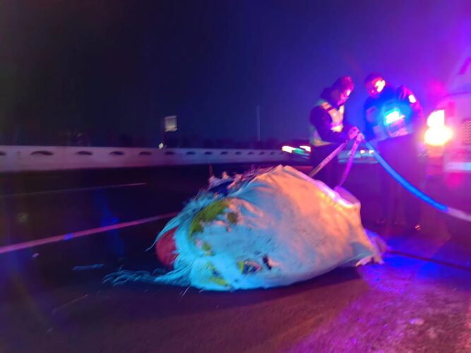 2023年12月11日,河南高速三支队民警在执行任务返回过程中发现辖区路面有一大包遗落的货物,在联合高速养护部门紧急处置消除隐患后,又成功找到了遗落货物的司机,帮助其挽回了损失。