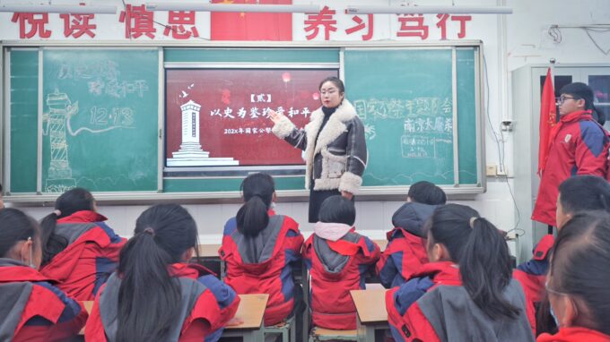 班会课上,各班班主任老师通过课件、视频等方式给学生讲解了国家公祭日的背景及确定公祭日的重要意义等知识,讲述了中国军民从奋力抗击侵略并取得伟大胜利以及抗日战争伟大胜利对国内外的深远意义等。同时带领学生向在南京大屠杀中死难者以及为民族抗战而牺牲的先烈们默哀一分钟。