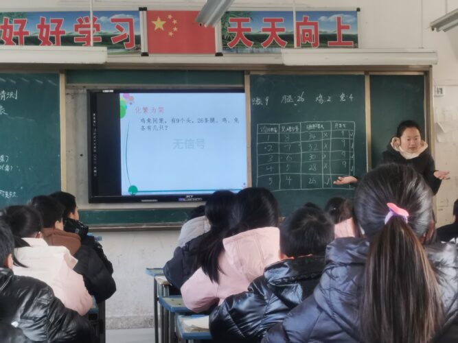 在沈寨一小,由省级骨干教师培育对象—–张婉娜老师带来的是五年级数学《尝试与猜测》,她充分发挥自己丰富的数学教学经验,采用循序渐进的教学方式,帮助学生逐渐掌握解题的思路,发散思维,培养独立解题能力,强调学生自主学习、探究和合作学习。通过阶段性反馈和不断积累,引导学生从中体验找寻解题方法的乐趣,激发他们的学习兴趣和动力,给沈寨一小的孩子们带来了不一样的课堂体验。
