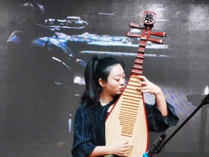 才艺展示中,参赛老师们“八仙过海,各显神通”,展示内容丰富多彩。既有舞蹈、体操、书法,又有琵琶、摇滚……台上歌声阵阵、舞姿翩翩,台下欢呼片片、掌声隆隆。声情并茂的朗诵,字字珠玑,用真挚饱满的感情,抒发着对祖国无限的热爱、赞美之情,在高声诵读中传承红色基因,弘扬建团精神。