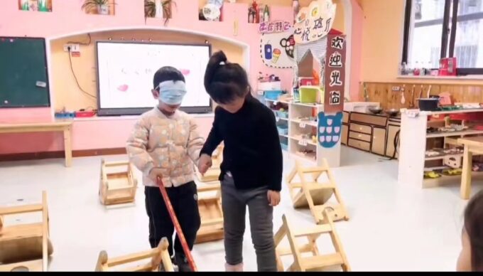 各班教师根据幼儿年龄特点以图片、故事、视频、情景表演、亲身体验等多种形式开展丰富多样的主题教育活动。小班教师通过讲述融合绘本《不一样的大卫》《弟弟的世界》让孩子走进特殊儿童的世界,用实际行动关爱身边的特殊儿童。中班的幼儿用手语表演《小小的梦想》、《最美的时光》等表达了对特殊儿童的的关爱和鼓励。大班以游戏的形式《你是我的眼》遮住眼睛让孩子亲身感受,深入了解有关特殊儿童存在的功能障碍知识,解读他们的行为与情绪,让孩子亲身体验特殊儿童的经历,激发幼儿主动帮助特殊儿童的情感。(贺超   李鹏飞 肖颖颖)