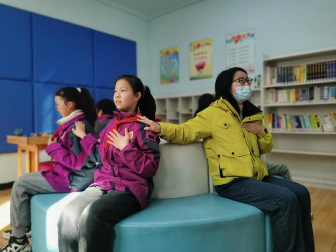 张老师还利用课下时间与学生谈心,向孩子们传授“放松训练法”“自我暗示法”等常见的情绪心理调节方法,教会学生从如何正确的深呼吸到从头到脚的放松练习,让学生知道在紧张的时候如何进行真正的放松。